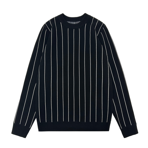 定制高品质冬季圆领提花套头衫针织衫纯棉男士套头衫条纹针织毛衣